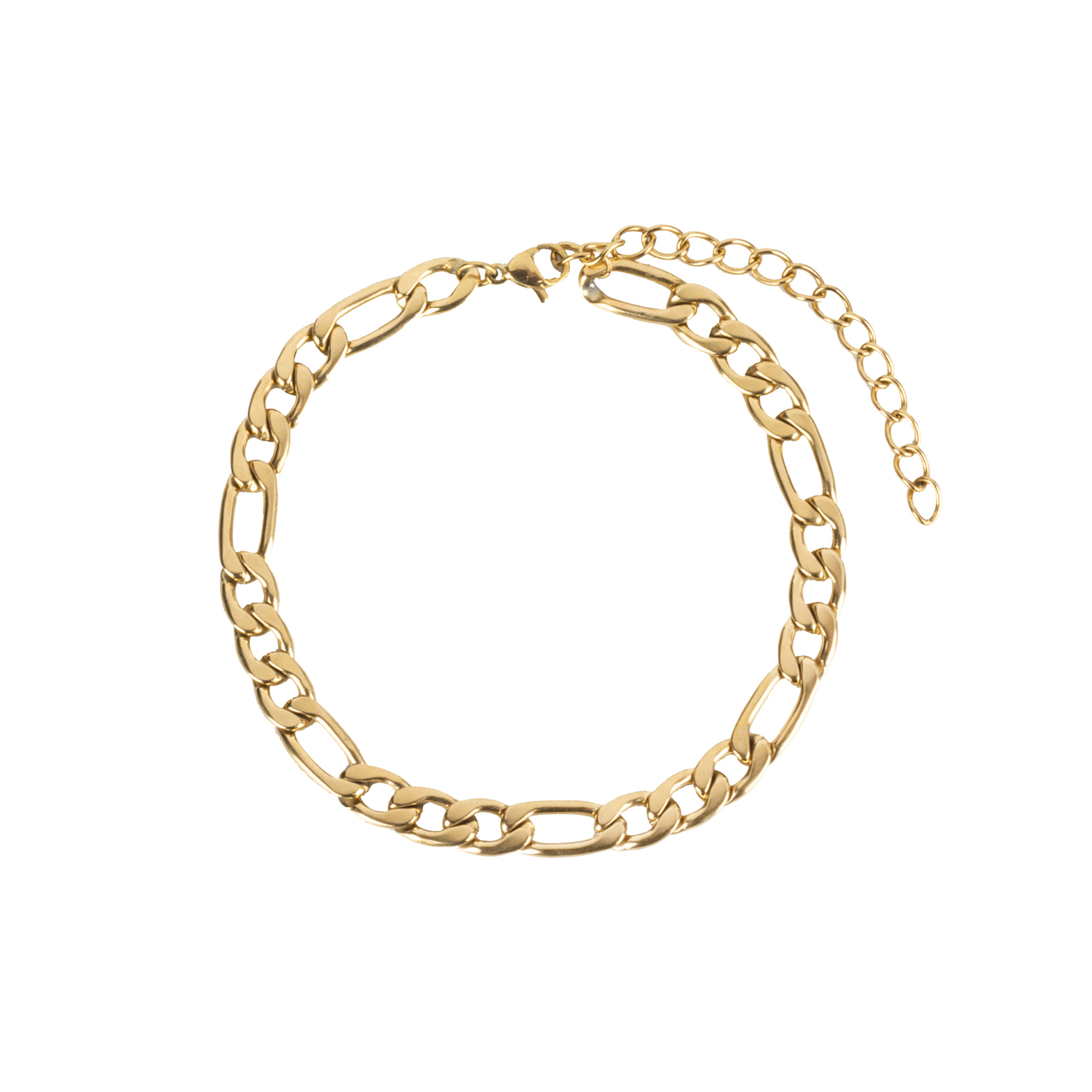 Ατσάλινη αλυσίδα ποδιού Figaro χρυσή με ατσάλινο κούμπωμα και ατσάλινη αλυσίδα επέκτασης. Δε μαυρίζει, αντοχή στο νερό και τη θάλασσα.