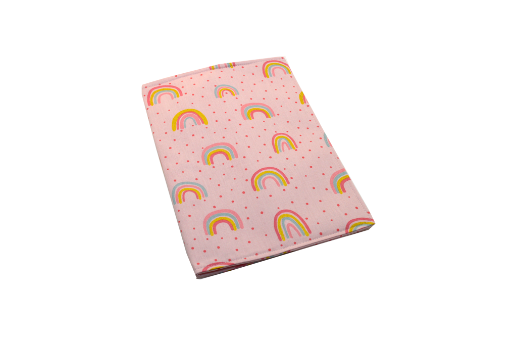 Θήκη για το βιβλιάριο υγείας του παιδιού με ροζ ουράνιο τόξο! Υπέροχο ύφασμα 100% βαμβακερό! Ιδανικό δώρο για νεογέννητο ή βάπτιση! Για να είναι το βιβλιάριο υγείας προστατευμένο και στυλάτο!