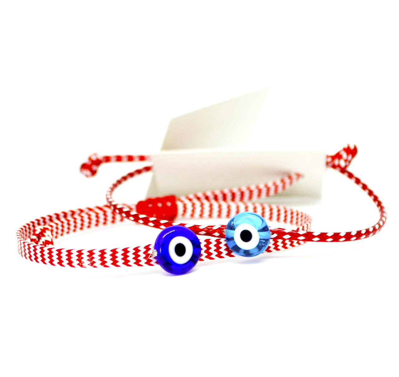 Σετ με 2 βραχιόλι μάρτη με μάτι και δέσιμο μακραμέ.