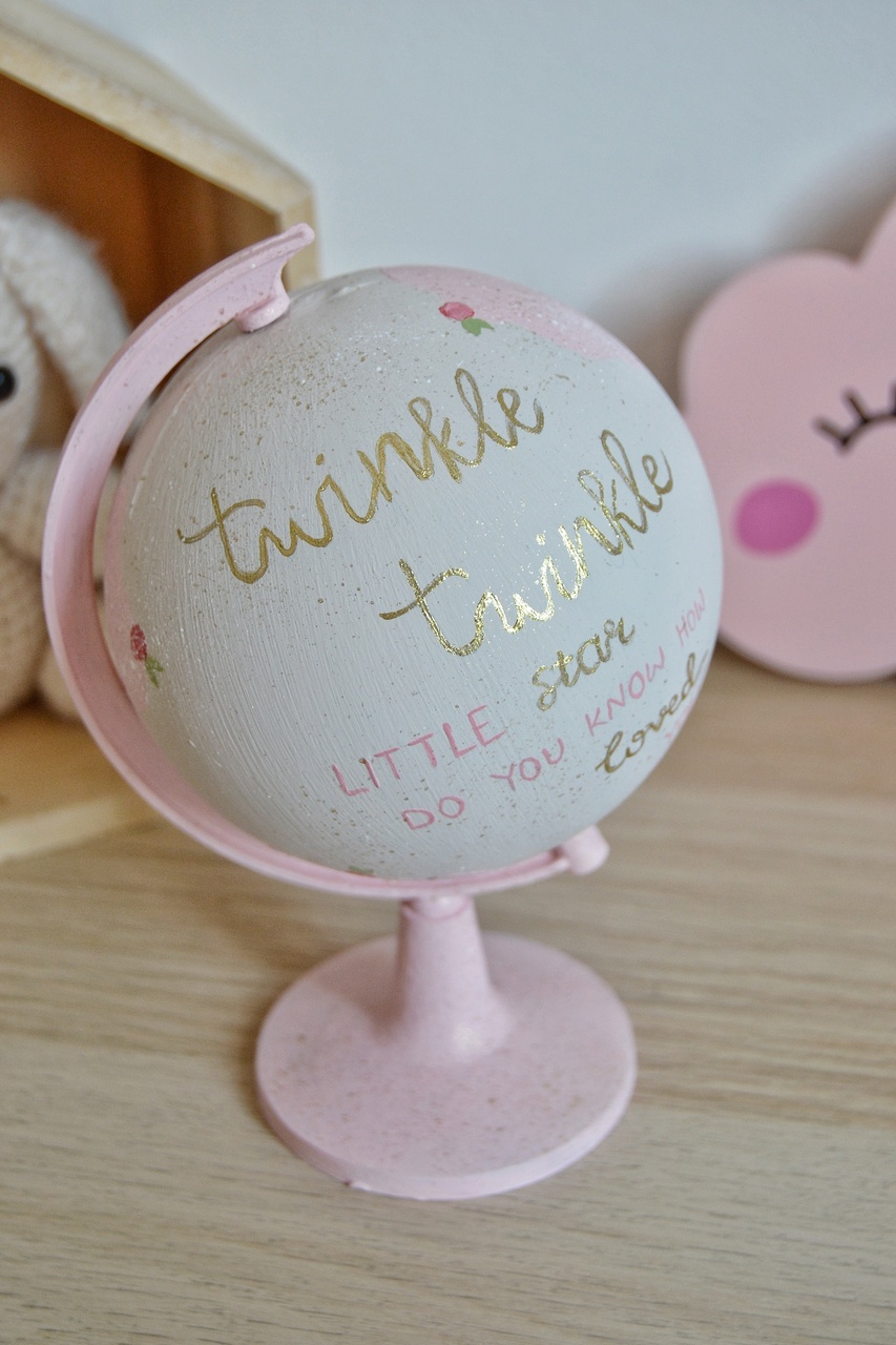 Υδρόγειος σφαίρα με μήνυμα "Twinkle Twinkle little star do you know how loved you are?"