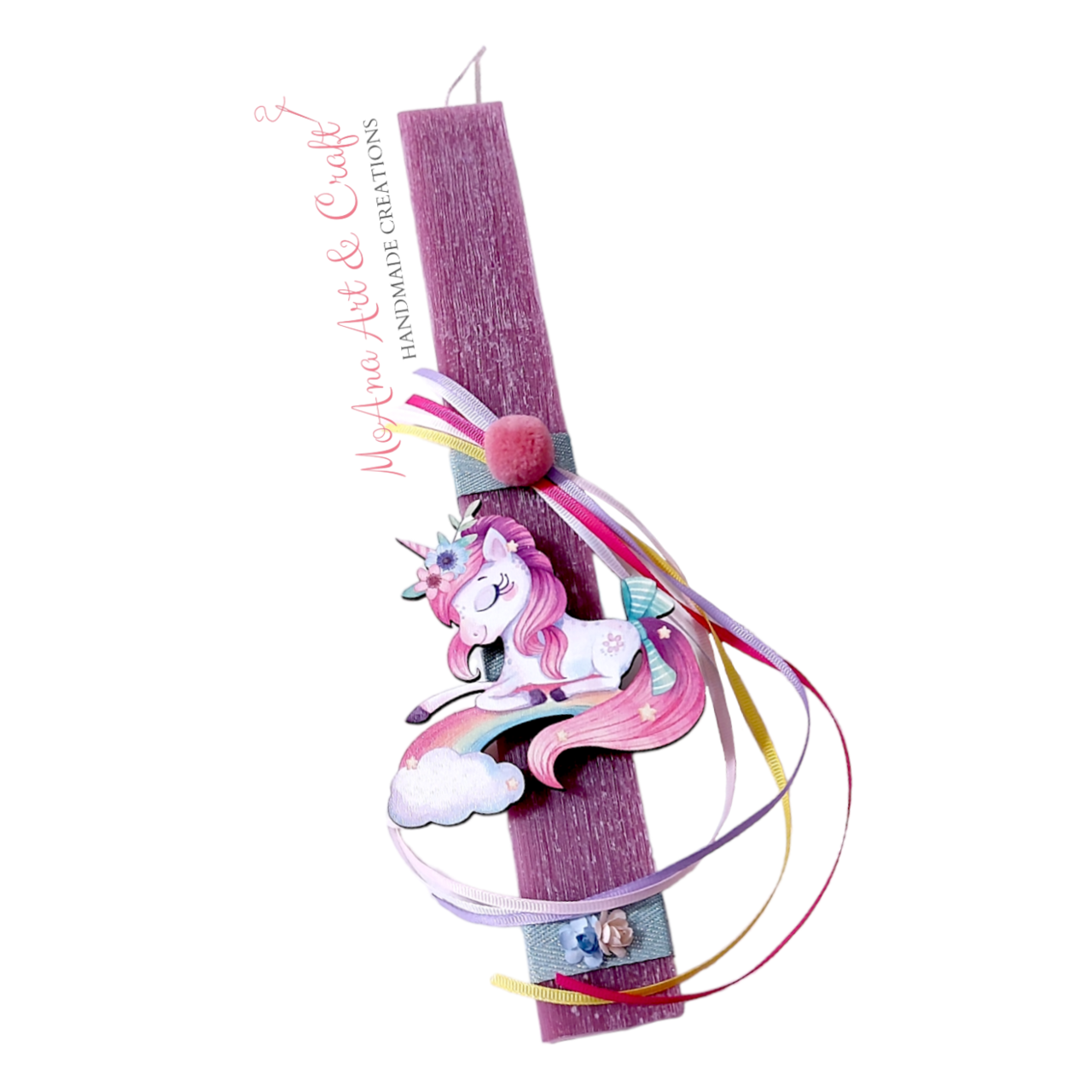 Λαμπάδα σετ μονόκερος 30εκ με τρίλιζα 1