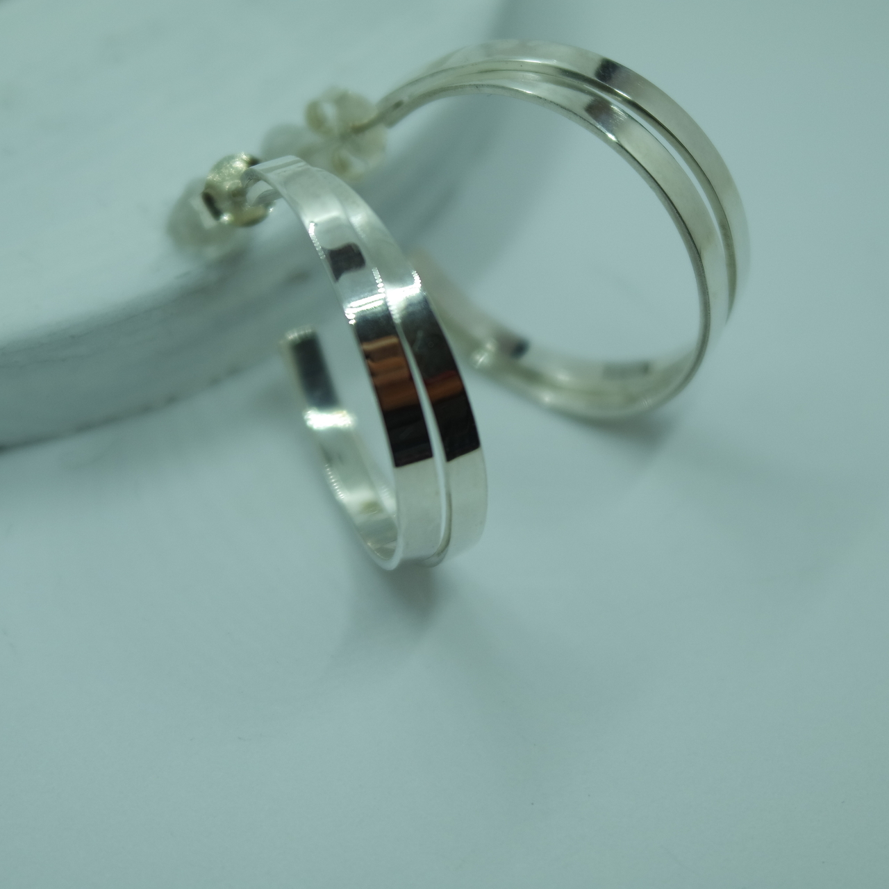 Double hoops | Ασήμι 925 χειροποίητα σκουλαρίκια κρίκοι