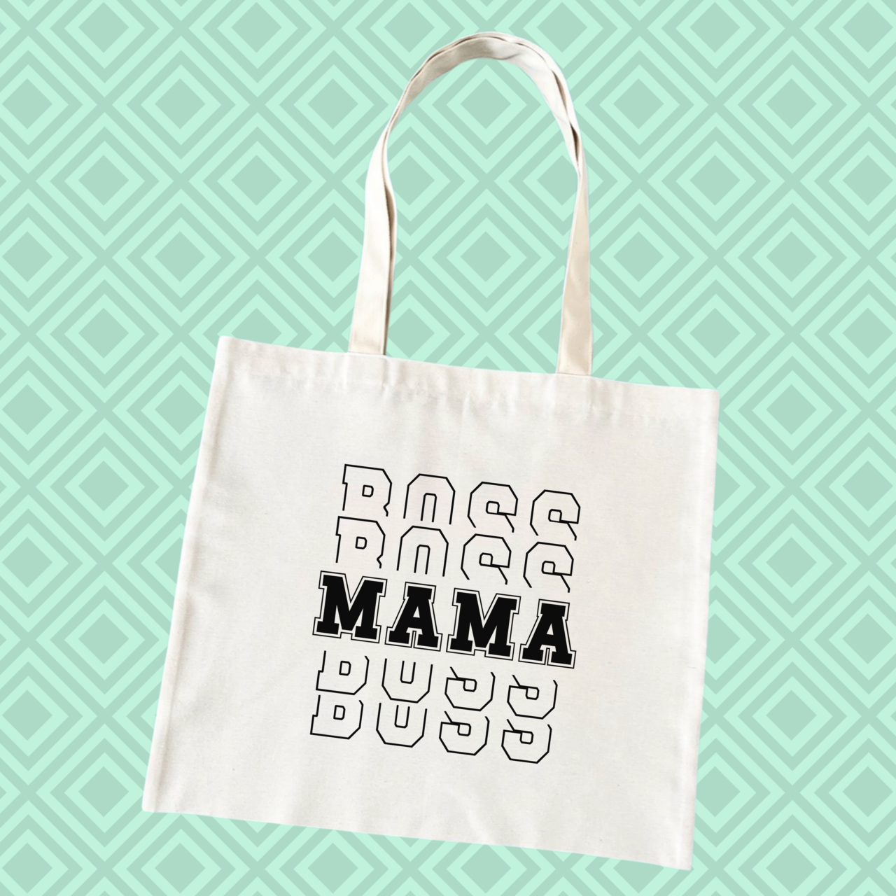 Χειροποίητη, υφασμάτινη τσάντα tote πολλαπλών χρήσεων 38x40 εκ., σχέδιο mama boss