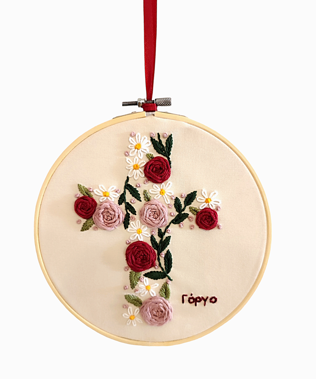 Σταυρός από λουλούδια κεντημένος σε τελάρο (20εκ.)