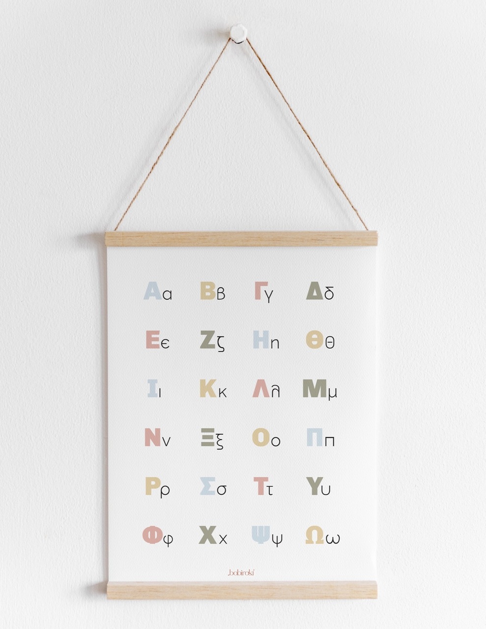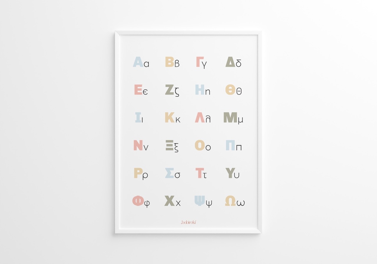 A4 Αφίσα | Επιμορφωτικό Πόστερ | Ελληνική Αλφάβητος | Πόστερ Ελληνικά | Πόστερ για παιδικό δωμάτιο | Αγόρι - Κορίτσι