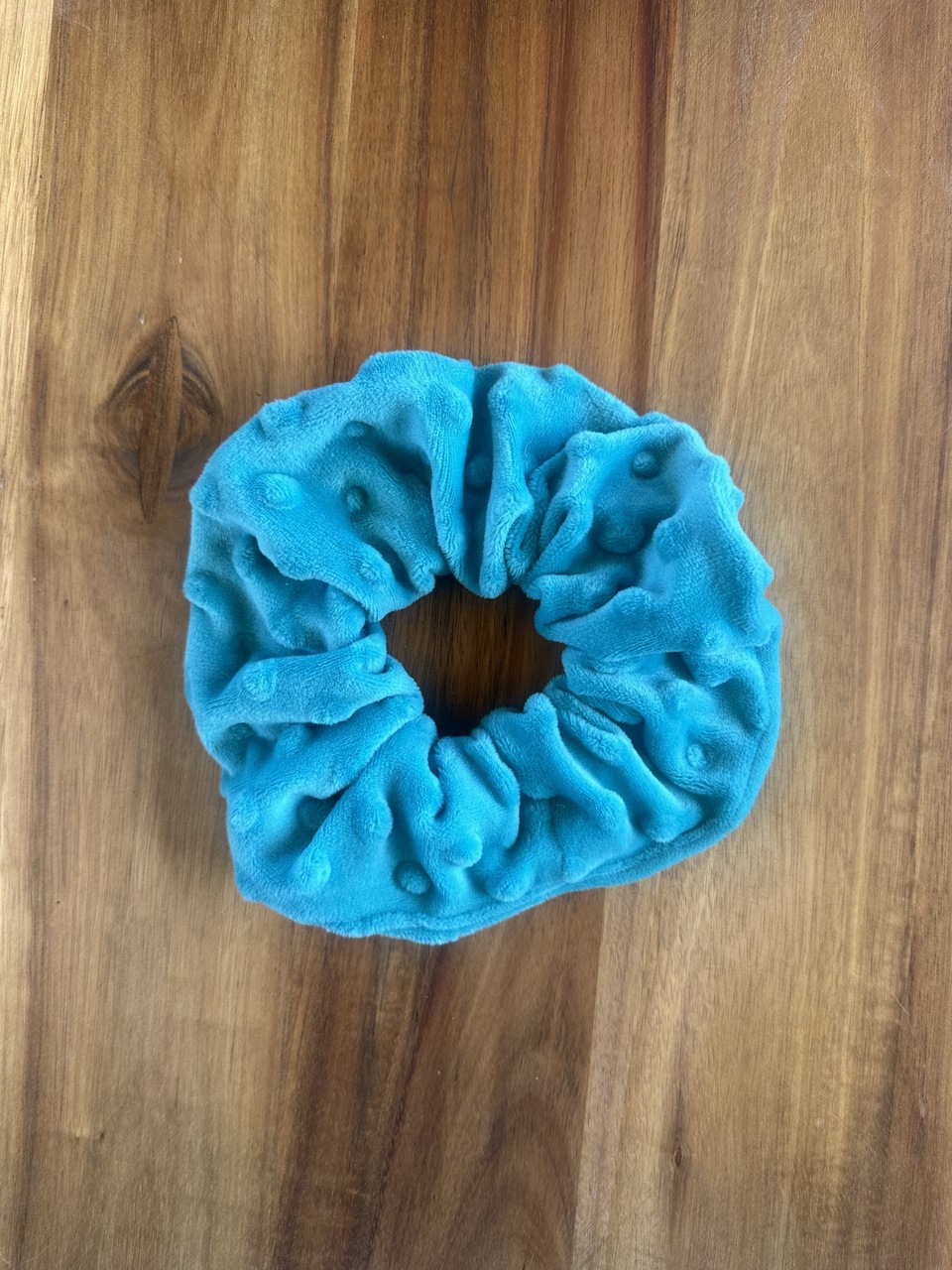 Τυρκουάζ αφράτο και ελαστικό scrunchie σε ύφασμα βελουτέ - Minky για να στολίσετε τα μαλλιά και τους καρπούς σας. Διάμετρος scrunchie 13-15 εκατοστά.