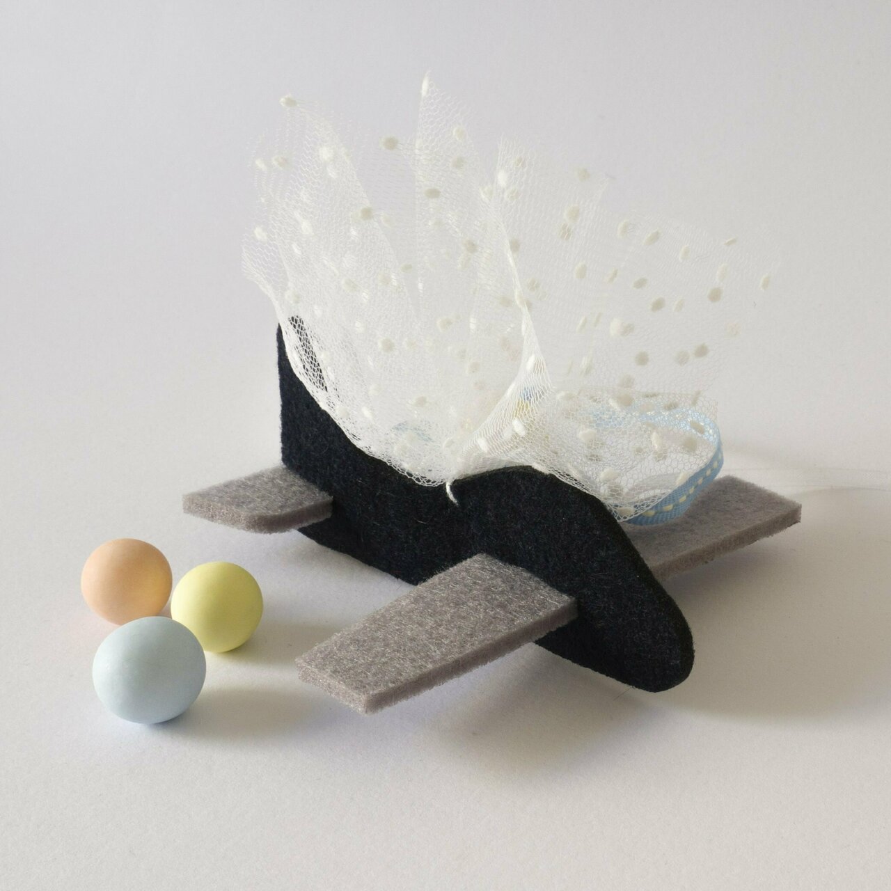 Μπομπονιέρα αεροπλανάκι από τσόχα σε γκρι και μπλε χρώμα