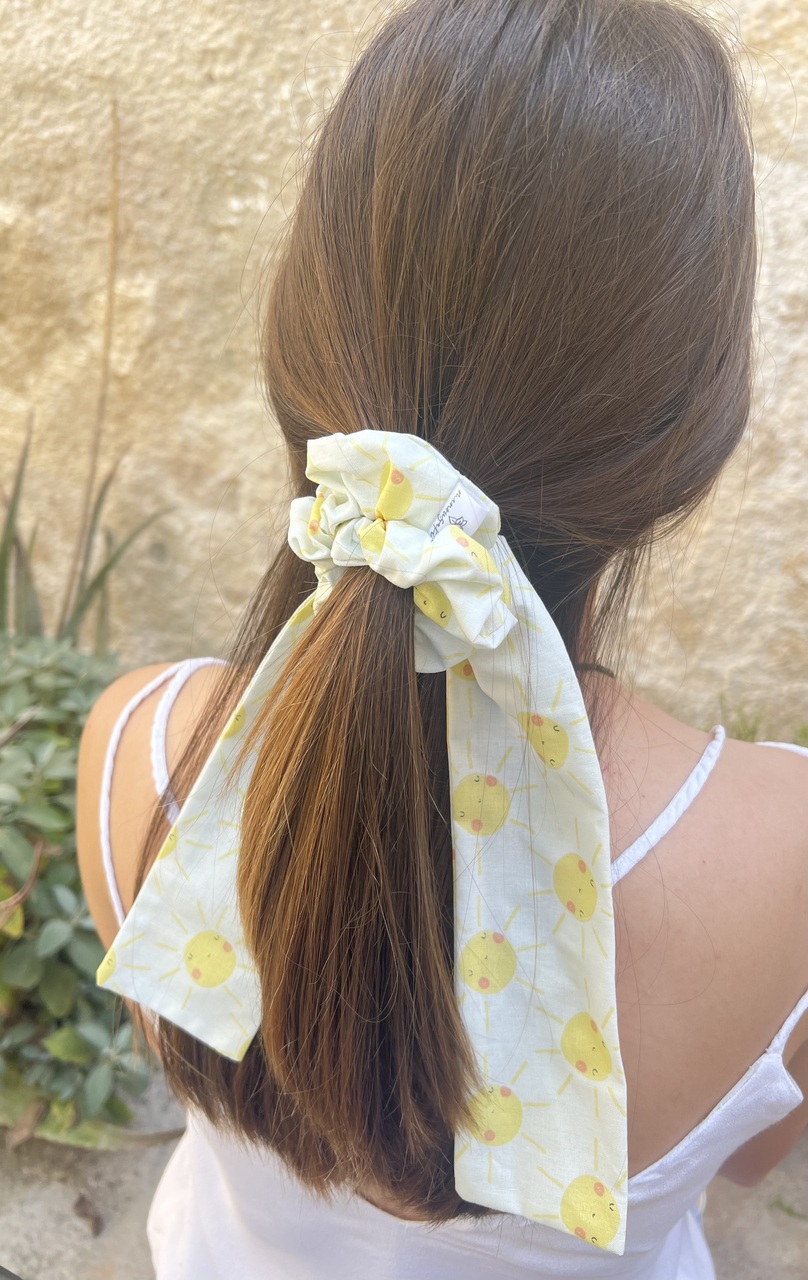 Χειροποίητο βαμβακερό scrunchie μαλλιών με μοτίβο ήλιους