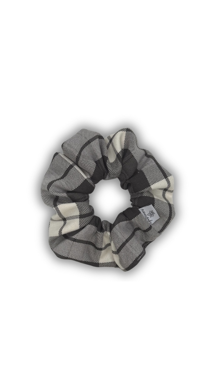 Χειροποίητο καρό λαστιχάκι μαλλιών σε γκρι και εκρού αποχρώσεις