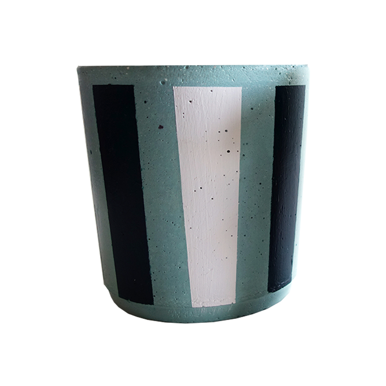 Γλαστράκι/ κασπώ από χρωματιστό τσιμέντο σε απόχρωση "MENTA", ζωγραφισμένο στο χέρι με πράσινο σκούρο και λευκό και περασμένο με ακρυλικό οικολογικό βερνίκι.Με χρώματα μοντέρνα και σχέδια γεωμετρικά που αποτελούν μια all time classic αξία, ταιριάζει τόσο σε κλασσική όσο και σε μοντέρνα διακόσμηση...